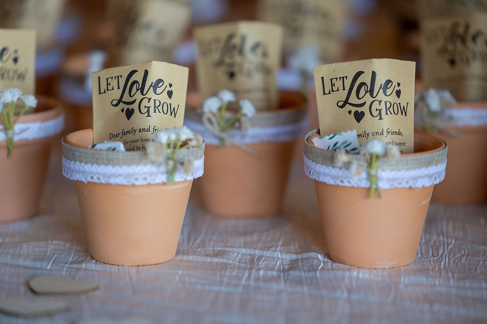 Seed packets or small potted plants represent growth and new beginnings - perfect for a wedding.